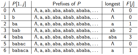 xxxxxxxxxxi 0 1 2 3 4 5 6 7 8 9 0 1=====================================================T | a | b | a | a | b | a | c | c | a | b | a | b | a |=====================================================P | c | a | b | a | b=====================================================✗ ✓ ✓